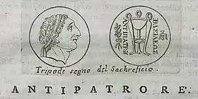 واحدة أو أكثر من الجمل السابقة تتضمن نصاً من منشور أصبح الآن في الملكية العامة: هيو تشيشولم, المحرر (1911). . موسوعة بريتانيكا. 2 (الطبعة الحادية عشر). مطبعة جامعة كامبريدج. صفحة 133. الوسيط |CitationClass=تم تجاهله (مساعدة)CS1 maint: ref=harv (link) - Walsh, John (2012). "Antipater and Early Hellenistic Literature". Ancient History Bulletin. 26: 149–62. الوسيط
