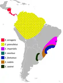 تتوزع أنواعه من أمريكا الوسطى إلى شمال شرق الأرجنتين.