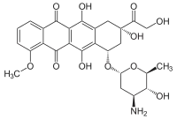 |CitationClass=تم تجاهله (مساعدة) - Binaschi M, Bigioni M, Cipollone A, Rossi C, Goso C, Maggi CA, Capranico G, Animati F (August 2001). "Anthracyclines: selected new developments". Current Medicinal Chemistry. Anti-Cancer Agents. 1 (2): 113–30. doi:10.2174/1568011013354723. PMID 12678762. الوسيط
