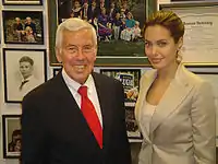 أنجلينا جولي ((بالإنجليزية: Angelina Jolie) /dʒoʊˈliː/؛ née فويت (بالإنجليزية: Voight)، سابقا جولي بيت (بالإنجليزية: Jolie Pitt)،[12] مواليد 4 يونيو 1975)،[13] وهي ممثلة، وصانعة أفلام، وإنسانية أمريكية. حصلت علي العديد من الجوائز مثل: جائزة أوسكار واحدة، و3 جوائز غولدن غلوب، وجائزتين نقابة ممثلي الشاشة، ولُقبت بالممثلة الأعلي أجرا في هوليوود عدة مرات. تُعرف جولي بأعمالها الخيرية الكثيرة، واختيرت عدة مرات لجائزة المرأة الأكثر تأثيراً علي مستوى العالم.