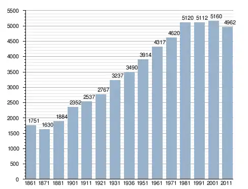 في سنة 1861 بلغ عدد السكان 1٬751 نسمة، وتطور العدد ليصل في سنة 2011 لـ 4٬962 نسمة.