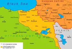بعد ثورة أكتوبر 1917، تصاعد التراجع الفوضوي للقوات الروسية من أرمينيا الغربية.[63] وقعت روسيا البلشفية والإمبراطورية العثمانية على هدنة إرزينجان في 5 ديسمبر 1917، منهيا الأعمال العدائية. اعترفت الحكومة الروسية السوفياتية رسمياً بحق تقرير المصير للأرمن العثمانيين في يناير 1918، ولكن في 3 مارس 1918، وقعت روسيا على معاهدة بريست ليتوفسك مع دول المركز، بالتنازل عن أرمينيا الغربية ومناطق واسعة في أوروبا الشرقية للتركيز قواتها ضد البيض في الحرب الأهلية الروسية.[64]