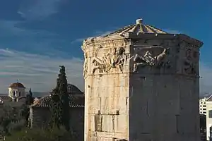 بني أندرونيكوس برجًا لقياس الوقت في أثينا، والذي سمّي باسم برج الرياح الذي ما زال باقيًا إلى الآن. البرج ثماني الأضلاع، منحوت على أضلعه رسوم تمثّل الثمان رياحات الأساسية. قديمًا، كان هناك تمثال من البرونز لترايتون على القمة، وهو يحمل قضيبًا في يده، ويدور بحسب بفعل الريح، ليشير إلى الربع الذي تهب منه الرياح.