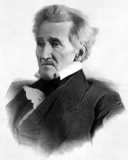 اندرو جاكسون (بالإنجليزية: Andrew Jackson) (15 مارس 1767 كارولينا الجنوبية - 8 يونيو 1845، تينيسي)، رئيس الولايات المتحدة الأمريكية السابع بالفترة من 1829 إلى 1837. كان الحاكم العسكري لفلوريدا عام 1821، وقائد القوات الاميركية في معركة نيو اورليانز عام 1815. اشتهر عنه الصرامة وبعد الحرب درس القانون. في عام 1788 أصبح محامياً في الجزء الشمالي الغربي من ولاية كارولينا الشمالية الآن تينيسي، وفاز بشعبية كبيرة وانتخب في مجلس الشيوخ في سن 30 وشارك بصفة عامة في حرب 1812، حيث هزم القوات البريطانية. أصبح لاحقاً بطلاً قومياً، كما شارك في الحرب التي أدت إلى شراء ولاية فلوريدا في عام 1819 وأصبح أول حاكم للدولة هناك. نجح في انتخابات الرئاسة سنة 1828 وانتخابات سنة 1832 وقام بتأسيس الحزب الديمقراطي . لكنه قبل تاسيس الحزب الديموقراطي كان ينتمي لحزب الديموقراطي-الجمهوري الذي كان بقيادة طوماس جفرسون وجيمس ماديسون قبل سنة 1828. في عام 1828 فاز على جون كوينسي آدامز في الانتخابات الرئاسيه. وأصبح رئيسا للولايات المتحدة في 4 مارس 1829. وأُعيد انتخابه لولاية أخرى بعد اربع سنوات.