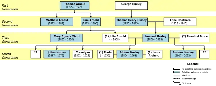 هكسلي هو أخ غير شقيق لكل من الكاتب ألدوس هكسلي وعالم البيولوجيا التطورية جوليان هكسلي، وحفيد عالم الأحياء توماس هنري هكسلي.