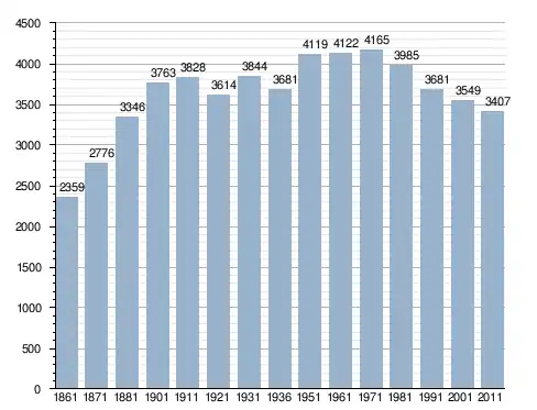 في سنة 1861 بلغ عدد السكان 2٬359 نسمة، وتطور العدد ليصل في سنة 2011 لـ 3٬407 نسمة.