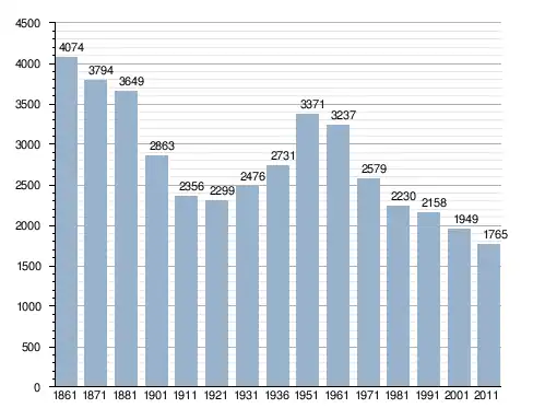 في سنة 1861 بلغ عدد السكان 4٬074 نسمة، وتطور العدد ليصل في سنة 2011 لـ 1٬765 نسمة.