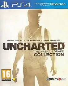 ![]() الإصدار الأوروبي للعبة أنشارتد: ذا نايثن دريك كولكشن ، حيث تجمع ثلاثة ألعاب رئيسية للسلسلة | |