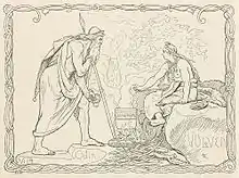 ![]() أنغربودا (في الخلفية) وأولادها: يورمونغاند ، فنرير وهيل. إميل دوبلر ، 1905 | |