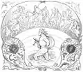 الإله ثور يتجول في النهر ، بينما يركب Æsir عبر الجسر ، Bifröst ، في رسم توضيحي لورينز Frølich (1895).