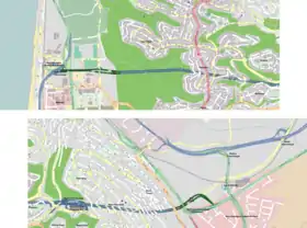 | تظهر أنفاق الكرمل في الخريطة باللون الأزرق الداكن | |