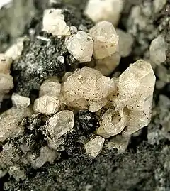 ![]() Anorthite crystals in a basalt vug from Vesuvius (size:6.9 x 4.1 x 3.8 cm) | |