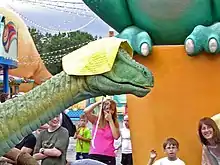 محظوظ الديناصور هو Segnosaurus حوالي 8 أقدام طويل القامة (2.4 م) الأخضر الذي يسحب عربة مغطاة الزهور ويقودها "تشاندلر معالج الديناصور". محظوظ هو ملحوظ في أنه كان أول شخصية خالية من جوالة السمعية ومتحرك. العربة زهرة يسحب يخفي المصدر الكمبيوتر والسلطة.