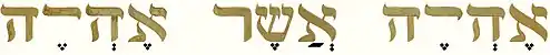 أَهْيَهِ الَّذِي أَهْيَهْ ترجمة عربية شائعة للعبارة العبرية אֶהְיֶה אֲשֶׁר אֶהְיֶה، وتقرا بالعبرية أَهيَة أَسير أَهيَة - و تعني أيضًا "أنا الذي هو أنا" أو "أنا ما كنت أنا" أو "سأكون ما سأكون" . [1] الترجمة العربية داخل اليهودية تحبذ "سأكون ما سأكون" لأنه لا يوجد مضارع للفعل "الكون" في اللغة العبرية. لذلك على سبيل المثال، يقال "أنا اكون رجل" باللغة العبرية سيكون المعني المقصود (حرفيًا باللغة العربية هو "أنا رجل").
