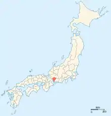 خريطة مقاطعات اليابان (1868)، مقاطعة أواري تظهر باللون الأحمر.