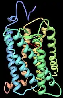 - رودوبسين كصبغة بصرية توجد في الفقريات وغير الفقريات من الحيوانات ؛ وهي تمتص الضوء بين طول موجة 492 و 502 بحسب نوع الحيوان .[3]