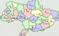 تقسم أوكرانيا إلى 24 أوبلاست (إقليم)، وجمهورية ذاتية الاستقلال في شبه جزيرة القرم. بالإضافة إلى ذلك لكل من مدينتي كييف العاصمة وسيفاستوبول وضع قانوني خاص. تنقسم الأقاليم 24 والقرم إلى 490 رايون (مقاطعة)، أو وحدة إدارية من المستوى الثاني. وسط مساحة رايون الأوكرانية هو 1200 كيلومتر مربع (460 ميل مربع)، ومتوسط عدد السكان فيها 52,000 شخص.[1]