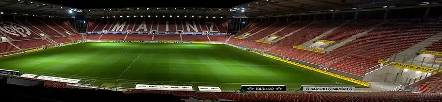 أوبل أرينا هو ملعب متعدد الاستخدامات في ماينز،راينلاند بالاتينات،ألمانيا تم افتتاحه في عام 2011،ويتم استخدامه لمباريات كرة القدم وهو الملعب الرئيسي لنادي ماينز 05 ويستضيف مبارياته في الدوري الألماني،ويتسع الملعب ل34،034 متفرج،وقد حل محل ملعب آم بروتشفيغ الملعب السابق لنادي ماينز.