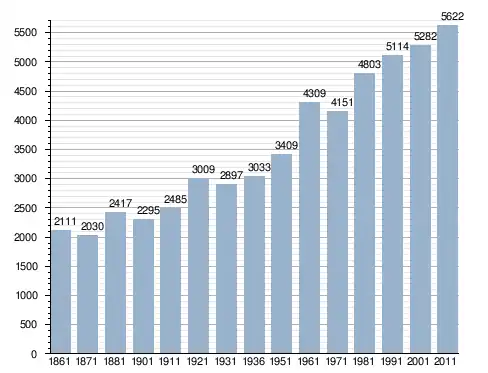 في سنة 1861 بلغ عدد السكان 2٬111 نسمة، وتطور العدد ليصل في سنة 2011 لـ 5٬622 نسمة.