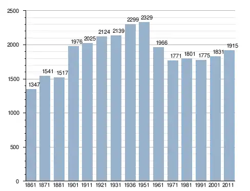 في سنة 1861 بلغ عدد السكان 1٬347 نسمة، وتطور العدد ليصل في سنة 2011 لـ 1٬915 نسمة.