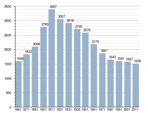 في سنة 1861 بلغ عدد السكان 1٬596 نسمة، وتطور العدد ليصل في سنة 2011 لـ 1٬506 نسمة.