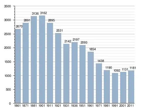 في سنة 1861 بلغ عدد السكان 2٬670 نسمة، وتطور العدد ليصل في سنة 2011 لـ 1٬181 نسمة.
