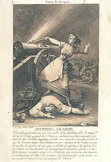 أوجستينا من أراغون (4 مارس 1786- 29 مايو 1857) بطلة إسبانية دافعت عن إسبانيا خلال حرب الاستقلال الإسبانية. بداية كمدنية وأخيراً كضابط محترف في الجيش الإسبانى. معروفة كجان دارك الإسبانى".[1][2] كانت الموضوع الرئيسى لكثير من الفلكلورو الأساطير والأعمال الفنية، بما في ذلك رسومات فرانثيسكو دى غوياوأشعار اللورد بايرون.
