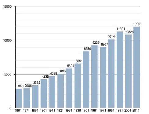 في سنة 1861 بلغ عدد السكان 2٬843 نسمة، وتطور العدد ليصل في سنة 2011 لـ 12٬001 نسمة.