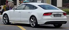 أودي إي 7 Audi A هي سيارة تنفيذية أنتجتها أودي منذ عام 2010. إنها سيارة باب خلفي بخمسة أبواب، وتتميز بخط سقف مائل مع نافذة خلفية شديدة الانحدار وغطاء صندوق خلفي مدمج (يشكل ما يسمى "سبورت باك") وأربعة أبواب بدون إطار.