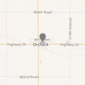 - "صفحة أورتشارد (نبراسكا) في GeoNames ID". GeoNames ID. اطلع عليه بتاريخ 6 مارس 2021. الوسيط