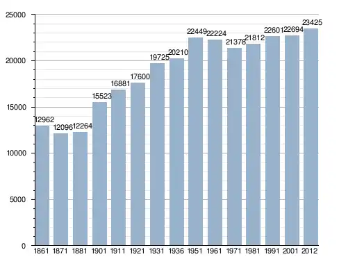 في سنة 1861 بلغ عدد السكان 12٬962 نسمة، وتطور العدد ليصل في سنة 2012 لـ 23٬425 نسمة.
