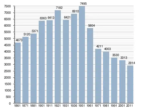 في سنة 1861 بلغ عدد السكان 4٬673 نسمة، وتطور العدد ليصل في سنة 2011 لـ 2٬914 نسمة.