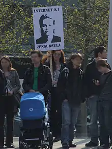 |CitationClass=تم تجاهله (مساعدة)صيانة CS1: BOT: original-url status unknown (link) - Reißmann, Ole (16 October 2009). "Stoppschild für Zensursula" (باللغة الألمانية). صحيفة شبيغل الإلكترونية. مؤرشف من الأصل في 12 مايو 2012. اطلع عليه بتاريخ 6 سبتمبر 2011. الوسيط