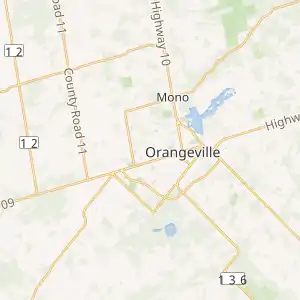 - "صفحة أورنجفيل (أونتاريو) في خريطة الشارع المفتوحة". OpenStreetMap. اطلع عليه بتاريخ 5 مارس 2021. الوسيط