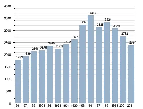 في سنة 1861 بلغ عدد السكان 1٬782 نسمة، وتطور العدد ليصل في سنة 2011 لـ 2٬397 نسمة.