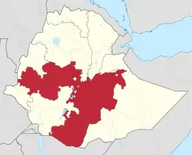 ![]() خريطة لإثيوبيا تظهر منطقة أوروميا | |||