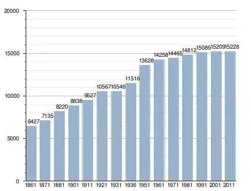 في سنة 1861 بلغ عدد السكان 6٬427 نسمة، وتطور العدد ليصل في سنة 2011 لـ 15٬228 نسمة.