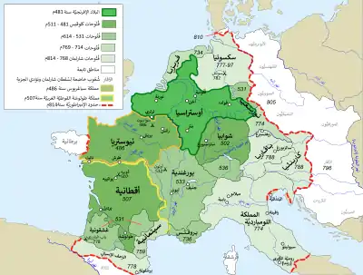 بعد وفاة ملك الفرنجة كلوفيس الأول عام 511، قام أولاده الأربعة بتقسيم مملكته عليهم، حيث حصل ثيودوريك الأول على الأراضي التي أصبحت فيما بعد أستراسيا. وانحدر من نسل ثيودورك سلسلة من الملوك الذين حكموا أستراسيا حتى العام 555، عندما تم توحيدها مع ممالك الفرنجة الأخرى التي كانت تحت حكم كلوتير الأول، الذي ورث كل ممالك الفرنجة بحلول عام 558، ثم قام بإعادة تقسيم المناطق التابعة للفرنجة بين أبنائه الأربعة، إلا أن الممالك الأربعة اندمجت مع بعضها مرة أخرى وكونت ثلاث ممالك بعد وفاة شاربيرت الأول في سنة [567] حيث ظلت أوستراسيا تحت حكم سيجيبيرت الأول ونيوستريا تحت حكم شيلبيريك الأول وبورغاندي تحت حكم جونتران. وقد حددت هذه الممالك الثلاثة التقسيم السياسي لفرانكيا حتى ظهور الكارولينجيون وحتى بعد ذلك.