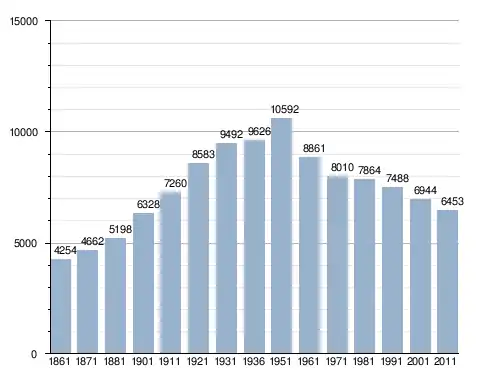 في سنة 1861 بلغ عدد السكان 4٬254 نسمة، وتطور العدد ليصل في سنة 2011 لـ 6٬453 نسمة.