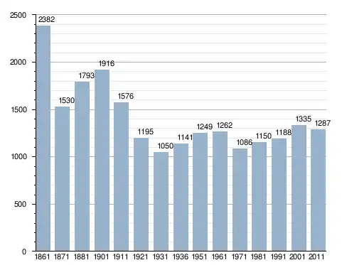 في سنة 1861 بلغ عدد السكان 2٬382 نسمة، وتطور العدد ليصل في سنة 2011 لـ 1٬287 نسمة.