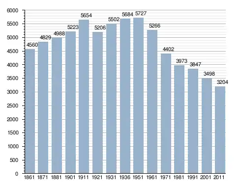 في سنة 1861 بلغ عدد السكان 4٬560 نسمة، وتطور العدد ليصل في سنة 2011 لـ 3٬204 نسمة.