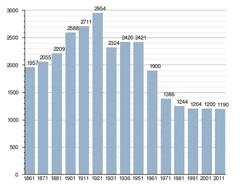 في سنة 1861 بلغ عدد السكان 1٬957 نسمة، وتطور العدد ليصل في سنة 2011 لـ 1٬190 نسمة.