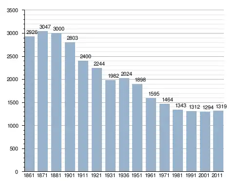 في سنة 1861 بلغ عدد السكان 2٬926 نسمة، وتطور العدد ليصل في سنة 2011 لـ 1٬319 نسمة.