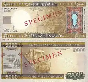![]() وجها ورقة من فئة 5000 أوقية | ||||