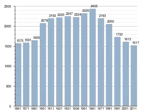 في سنة 1861 بلغ عدد السكان 1٬575 نسمة، وتطور العدد ليصل في سنة 2011 لـ 1٬517 نسمة.