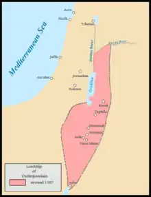 أمتدت المنطقة جنوبا عبر صحراء النقب إلى خليج العقبة (بالتحديد إلى جزيرة فرعون الآن). إلى شمال وشرق (جلعاد القديمة) لم تكن هناك حدود حقيقية — وإلى شمال البحر الميت وإلى شرق كانت طرق قوافل الحج، وجزءا من الحجاز المسلم. وكانت هذه المناطق أيضا تحت سيطرة السلطان في دمشق، وبحكم العرف الخصوم نادرا ما التقوا هناك لمعركة أو لأغراض أخرى.