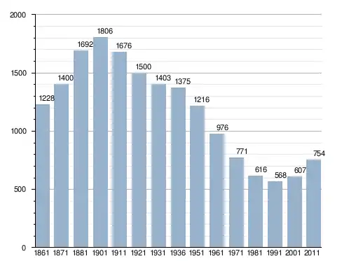 في سنة 1861 بلغ عدد السكان 1٬228 نسمة، وتطور العدد ليصل في سنة 2011 لـ 754 نسمة.