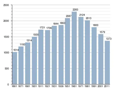 في سنة 1861 بلغ عدد السكان 1٬014 نسمة، وتطور العدد ليصل في سنة 2011 لـ 1٬373 نسمة.