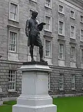 يقف تمثالٌ له أمام كلية ترينيتي Trinity في دبلن، صَانعهُ جون هنري فولي JH Foley ( انظر للصورة ) .