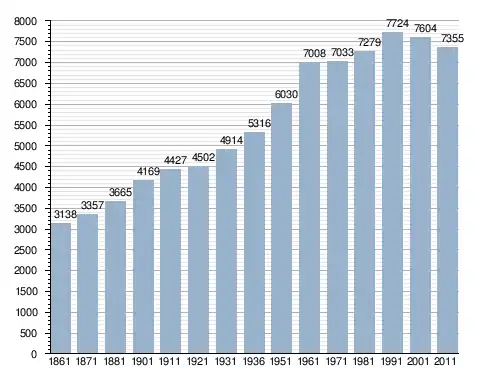 في سنة 1861 بلغ عدد السكان 3٬138 نسمة، وتطور العدد ليصل في سنة 2011 لـ 7٬355 نسمة.